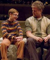 While the iconoclastic Murray is the central character in Herb Gardner's 1962 A Thousand Clown, it's young Nick, the third Burns, who is the star of the Berkshire Theatre Group's revival. Plays that importantly feature talented kid actors, are always risky for their adult colleagues. The five-year-old literally left on Murray's doorstep has always been a scene stealer, the name indelibly linked to this first Gardner play (I'm Not Rappaport was his biggest hit), it is Jason Robards, who created the madcap Murray on stage and again on screen. . While Nicolas King's Nick stole plenty of scenes and Tom Selleck wasn't quite as nuanced a Murray as Robards, it was his sexy, easygoing charm and star power that dominated the 2001 Broadway revival. C. W. Wilson, though a well credentialed actor has a somewhat harder time making the audience buy into and love the lovable nonconformist who's been unemployed since quitting his job as head writer for a children show he detests but finds himself forced to choose between social conformity and responsible adulthood. As directed by Kyle Fabel and performed by Wilson, the anger simmering beneath the disarmingly nutty scamp persona is more evident and makes Murray not quite such an irresistible charmer. That's not to say that Wilson is horribly miscast, especially since he does get hold of Murray during by the time Murray is ready to leave Neverland in order not to abandon his better self or Nick and even earlier, when he and Nick pull out their ukelales to perform their favorite song, "Yes Sir, That’s My Baby" for the uptight sociel worker, Albert Amundson (James Barry) amd his overly, warm-hearted assistant Sandra Markowitz (Rachel Bay Jones). Nor does my singling out Posner as this production's star, mean that the rest of the ensemble isn't excellent. Ms. Jones who seems to be channeling Sandy Dennis, the original prim and proper social worker who falls madly and compassionately in love with Murray and Nick, does so very well indeed — and is especially good with some of the morning after physical shtick. James Barry, who has been an outstanding company regular, mostly in dramatic roles, proves himself most apt in the more comic role of Albert Amundson, the stand-in for the facts and nothing but the facts social services system. Andrew Polk is just fine as well-meaning but frustrated brother Arnold. Jordan Gelber is delightfully odious as the unfunny comedian whose show Murray quit and whose late om tje [;au appearance at the Burns apartment brings the things to a hilarious and ultimately heart-tugging climax. The fact that Russell Posner runs away with top honors is helped by his character having the best and funniest lines. His role as one of two teen aged brothers temporarily left in the dictatorial care of their sour grandmother in last season's terrific revival of Neil Simon's Lost In Yonkers by the TACT company was good preparation for his portraying another kid with lots of moxie. Nick is happier with his happy-go-lucky uncle than Jay was with his autocratic grandmother, even though that relationship has forced him to be the more sensible grown-up. Posner is again a winning combination of smart alecky wit and insecurity, as evidenced by his constantly trying out new names and nudging his uncle to find a job. While this production overall looks good and was amazingly well written comedy with serious undertones in its day, especially considering that the playwright was in his twenties, it is dated. . Living as we do in a time when voluntary unemployment is hardly a choice too many people suffering from long-term layoffs could understand or find amusing. Social agencies that are unable to do anything for homeless families, would hardly have the resources to concern themselves with Nick. That said, if this were real life instead of a half century old play, I'd say, if things don't turn out with Uncle Murray's return to work, I'd be happy to pull out the convertible in my spare room for a long visit from Posner's Nick any day. Hopefully, I'll see him in another play soon instead.