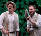 Fiasco, founded by alums from Brown University and Trinity Rep's acting programs, has become a synonym for theatrical inventiveness. They first strutted their Shakespearean stuff in Twelfth Night, later followed by Cymbeline, and Measure for Measure. With their new iteration of Two Gentlemen the 6-member troupe prove once again that they sure know how to move a play along. Two Gentlemen is hardly the Bard's masterpiece and bears all the flaws of an apprentice work. Indeed many a scholar has wagged a finger at its most famous gaffe in Act 1, where Valentine travels between the inland cities of Verona and Milan by boat ("Once more, adieu! My father at the road/ Expects my coming, there to see me shipped."). While this geographic slip may be the most conspicuous of the play's incongruities, it has many other dramaturgical tell-tales that reveal that the Bard was still wet behind the ears as a playwright. In any case, the program neatly tucks in a round-up of what renowned critics have said about this early play over the years, and it's well worth a read. Fiasco, of course, takes the play's demerits in stride and succeeds by an economic and light handling of the plotline. In a nutshell, Two Gentlemen is about what happens when two swains, Valentine and Proteus, fall in love with the same woman, Sylvia. This love triangle is complicated by the fact that the fickle (and aptly-named) Proteus has already pledged his heart to Julia. The plot thematically borrows from the biblical parable of "The Prodigal Son" and also taps into the dramatic tension between male friendship and heterosexual love. In fact, the notorious near-rape scene at play's close, where Proteus sexually forces himself upon Sylvia but is halted by Valentine who is watching nearby and then forgives his (repentant) friend, illustratesmale friendship trumping over romantic love. This is an ensemble acting effort where nobody is hogging the stage or trying to upstage another actor. Jessie Austrian (Julia), Noah Brody (Proteus), Paul L. Coffey (Speed), Zachary Fine (Valentine), Andy Grotelueschen (Launce/Duke/Antonio), and Emily Young (Lucetta/Sylvia) are all in fine fettle here. A special shout out to Fine who terrifically plays the dog Crab simply by insinuating himself into a dog's posture. As his master, Lance is cataloguing and instancing Crab's canine behaviors (including "stealing a capon's leg" and urinating at the Duke's dinner), Fine comically adlibs in a stage whisper: "It's true, it's true, it's true!"--and other spot-on remarks. Jessie Austrian and Ben Steinfeld's co-direction keeps all the scenes moving forward briskly, only pausing the action now and then for one of the lyrical songs (including the famous "Who is Sylvia?" that Shubert would later score). They have morphed the Samuel H. Scripps Mainstage into an arena where characters find and lose love, only to re-find it again with more clear-eyed understanding. The action isn't limited to the stage either but expands it into all levels of the seating area. In fact, audience members can expect to have individual actors at times planted right next to their seats to perform their speech or song. It makes for a totally immersive theatrical experience. Derek McLane's semi-abstract set has the stage walls and ceiling covered with a plethora of crinkled-up material. While I was a whiff puzzled over what to make of it at first, I eventually accepted it as the rough equivalent of foliage on the cusp of blooming or symbolic love letters (six letters are delivered, or mis-delivered, during the play's proceedings). Props are sparse but all serve the dramatic moment: There are letters galore (with one spring shower of love letters in Act 2!), rings for would-be lovers Julia and Proteus to exchange, a rope ladder for Valentine to ascend to Sylvia's "window." There's also a guitar and other musical instruments for serenades. Tim Cryan's chameleon lighting design casts multiple hues over the stage to evoke romantic or not-so-romantic moods. Whitney Locher's modern costumes are dapper and delicious, right down to the colorful two-toned classic bucks worn by the well-to-do principals. Each costume suits the the character. Fiasco is a unique New York-based company whose mission is "to offer dynamic, joyful, actor-driven productions of classic and new plays," Though other companies may outdo Fiasco in feats of rhetoric (their Shakespearean chops are competent but far from satin-smooth), nobody holds a light to their spontaneity and their charming way of retooling works from the Bard's canon as well as their just closed pared-down staging of Into the Woods This breezy new production of Two Gentlemen in Brooklyn insures their standing in the New York theater community.
