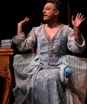 Eliot Spitzer and Rod R. Blagojevich certainly aren't the first American Governors whose behavior shocked their constituents. Edward Hyde, Lord Cornbury who became the third English Royal Governor in 1702, liked dressing up in elaborate gowns and wigs. While I was happy to see the last of Spitzer and wouldn't mind seeing the last of Blogojevich's carefully brushed mop of hair, I'd vote for Cornbury any day — at least as portrayed by the one and only David Greenspan in William H. Hoffman and Anthony Holland's Cornbury: The Queen's Governor, a campy faction that's having a brief run at the Hudson Guild Theater. You see, according to the playwrights the British Queen Anne's appointee not only embraced a less than conventional dress code, but people (native Americans, African born slaves and Jews) not accepted by his own countrymen as well as the Dutch who dominated New York.