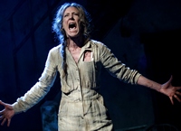 While both plays have a title character named Hester Smith and share Hester Prynne's as their inspirational forbear, the stories Parks has spun for each of her Hesters are quite different in both content and style. In the Blood, which I'll review after its 9/17 opening, is a starkly realistic tale of a homeless unwed mother, while Fucking A is a dystopian fable. As was the case for the Residency 1's re-visit to the playwright's pre-Pulitzer plays Venus and The Death of the Last Black Man in the Whole Entire World, Fucking A has been given a production that works well on all levels. It's directed by Jo Bonney with a sense for the rhythm to keeps it flowing. The cast, top to bottom, is up to giving fresh, meaningful life to this saga that's as relentlessly downbeat and bloody as any Greek tragedy. Unlike the modern-day adulteress of In the Blood, this Hester (a gut-stirring Christine Lahti) is an abortionist with the letter "A" branded into her skin according to the law of thid imagined state of a hellish unknown country. The cartoonish Mayor (Marc Kudisch, also appearing as a scribe used by the illiterate Hester to write letters to her imprisoned son) who rules Fucking A's fictional no man's land may well seem all too real to viewers given the current state of a world that's rife with dictators and narcissistic, democracy-challenging the leader of our own country. Being a fantasy, the script accommodates the interlocking plots that would be a credibility stretch in a more realistic play: the Mayor is married to the very woman (Elizabeth Stanley) who caused the long imprisonment of Hester's son (Brandon Victor Dixon) for a minor theft. While to Hester he's an angel, the program lists him as Monster which describes what prison has made him. It is to earn money to buy his freedom that Hester, has taken a step down from her already low on the social rung job as a scrubwoman to take on the job of abortionist which in this imaginary Dante's Inferno requires its always visible insignia —. the letter "A" stamped right into her flesh.As that "A" is branded into Hester's skin, so her hate for the Mayor's wife and the image of her son as an "angel" are deeply imprinted into her psyche. The devotion of her friend Canary Mary (a lovely, bouncy performance by Joaquina Kalukango), the Mayor's mistress who hopes to replace his sterile wife, can't keep Hester from her inevitably operatic path to perdition. Neither can her suitor (Raphael Nash Thompson), a butcher who also ends his work day with a bloody apron, . The bloody symmetry of their jobs and the rather too predictable result of his teaching her a trick of his trade notwithstanding, Thompson's butcher does add some much needed humor — especially with his hilarious monologue about the daughter about whose monstrous bad behavior he clearly has none of the illusions Hester has about her son. Viewers familiar with Parks's work won't be surprised to see Fucking A as another example of her penchant for composing songs to provide her stories with numerous musical interludes. The lyrics and music of the songs she's integrated into this script are reminiscent of the musical commentaries often found in the work of Bertolt Brecht. Thus, after discussing their jobs, the pert Canary countering Hester's comment that her flouncy new yellow dress makes her look like a whore with "I am a whore", the two women launch into "The Working Woman's Song" ("It's not that we love what we do/but we do it"). In fact, with cast members not needed on stage in balconies on either side of the stage providing instrumental accompaniment and several musical theater veterans playing key roles— notably Joaquina Kalukango, Marc Kudisch, Elizabeth Stanley and, most movingly, Brandon Victor Dixon as the Monster son — this often feels more like a dialogue heavy musical than a straight play. To enhance the sense of the outsider status of her female characters, Parks has also invented a language she calls "Talk" for interchanges about strictly female matters. These brief bursts of foreign-sounding gibberish with English translation projected on an upstage screen don't add much to the play. However, this doesn't detract from the overall excellence of this production. Credit for the show's visual success can be attributed to Rachel Hauck's set which makes excellent use of the space. Bravos are also in order for Jeff Croiter's stark lighting and Emilio Sosa's costumes. While Lahti is the center of this blood-soaked tale, under Jo Bonney direction all the actors are guided to fully inhabit their roles, in some cases more than one. Brandon Victor Dixon is especially touching as the "angel" son turned monster. In the play's most harrowing scene, Ben Horner is memorably scary as a prisoner pretending to be Hester's son during a picnic she's been allowed to have after years of no visitations. The Butcher's teaching Hester one-step, painless throat cutting telescopes the use to which she will put that lesson. Still, when that happens, it still comes as a shock. And the scar left on her young son's wrist so she could identify him no matter how much time passes before she can see him again is rather melodramatic as well as obvious. But then this is a fable so it's not really subject to the credibility called for by more realistic story telling. More about that, when I review In the Blood and, hopefully, before too long, the completion of Ms. Parks' 2014 epic Father Comes Home From The Wars . Editor's Note: While the title has become one that does indeed dare to fully speak it's name, this production's Playbill cover t still uses asterisks. I've followed suit for my headline for this review since I've experienced malware attacks when using the f-word in headlines. |