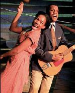 Toulou is living with her man, blues singer Ace of Spades. Ace travels quite a bit, singing and performing on the road, and he doesn't bother to disguise the fact that he has a woman in every port. Toulou wants him to herself and enlists the help of her friend and neighbor, Candy Lady, an old ex-slave and voodoo queen. The voodoo backfires predictably, and yet in ways no one could have predicted. Another plot strand has Toulou's brother shows up unexpectedly. He brings some very troubling memories from home. Toulou wants to break free of all this strife to pursue her dreams of becoming a blues singer. However, the ties of love and family exert their power. As her story unfolds, it touches on issues of race and gender relations, the history of blues music, the role of religion and the nature of love. While there's music, this is not really a musical. It best fits the genre of a play with music. The songs — all written by playwright Hall— are the best part of the show, especially for blues fans. Actors Angela Lewis (Toulou) and Kevin Mambo (Ace of Spades) could easily star in any musical or concert calling for accomplished blues singers and guitarists. They have a great feel for the music and the emotions behind the words. The songs provide an excellent dramaturgical counterweight to the action. Hoodoo Love runs long, especially for a play which at times suffers from too little in the way of forward action or thrust. It is nevertheless highly engrossing. Robin Vest's set is original and warm, as is Pat Dignan's lighting. The characters are richly drawn and full of surprises, and they interact in some unpredictable but realistic ways. All four actors excel and exemplify outstanding ensemble acting, with Lewis and Mambo's vocals stealing the show on several occasions. Lucie Tiberghien's direction highlights the music and the relationships. Sometimes this is to the detriment of the story development, but ultimately it all comes together.
