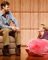 These changes are important to note when viewing None of the Above. Otherwise, you'll find yourself confused when the characters start talking about perfect scores of 2400. None of the Above looks at the cut-throat world of SAT prep, especially among the upper classes. Jamie is a 17-year-old moneyed Upper East Side socialite, going to a very elite private school. She spends her days texting, shopping, and clubbing, with very little effort going towards studying. Her parents are corporate jetsetters, usually traveling or on a never-ending international conference call. Clark is a poor, struggling grad student, hired as Jamie's private SAT tutor. As Clark and Jamie begin to work together, we realize Jamie is a lot smarter than she lets on—and that Clark has some very real and deep problems that he's trying to keep hidden. He's struck a Faustian deal with Jamie's father: he'll get paid an astronomical sum, but only if Jamie gets a perfect score on the test. Jamie, in a true paean to her parents' vicious business instincts, agrees to study her hardest, provided that Clark gives her a cut of his proceeds. Both learn that their futures depend on her success. This is a fairly vapid play masquerading as social commentary. However, it turns out that the play is a lot like Jamie—smarter than it first appears. Still, at two hours (with intermission), it's about 40 minutes longer than it needs to be. A lot of the scenes focus solely on character development at the expense of the story development. However, there's a great dynamic between the two characters, and although Clark is Dweeb Personified, Jamie has a very satisfying bit of personal growth. Halley Feiffer and Adam Green have worked together before (most recently in Second Stage's Election Day), and it shows. Their easy camaraderie belies the tense nature of their characters' relationship, though their familiarity makes the romantic ending seem forced. While there's a lot of fluff in the play, Julie Kramer's direction downplays it. The set, which is appallingly accurate in all its pink-ruffles-and-stuffed-animals-17-year-old glory, could have been simpler and still gotten its point across. The scene changes should be faster. Ultimately this is an intriguing look at class dynamics, the increasing pressures on teenagers to excel (especially those with over-achievers for parents) and the role of standardized testing in a so-called education. Dealing with the SATs and getting into a good school is hard enough (as most of us will remember); it's exponentially more stressful when you're aiming for perfection in the form of a 2400 score. The real lesson to be learned from those tests: It isn't the score that matters, but what you learn along the way.