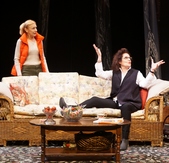 Whatever Ayvazian's intentions are for Carol (played by Ms Ayvazian) and for Jill (June Ballinger), they quickly get side tracked by the actual experience of being somewhere they would never ordinarily pick to go for a weekend with husbands who apparently had little to say about it. It seems as if Jill goes with apparent regularity around the world on dangerous treks alone; treks that have Carol wondering if her dear friend hasn't considered having a sex with a guide on such trips, her latest in the Amazon jungle. It soon becomes clear that Carol, who admits to not particularly liking to walk, questions this choice of being in this rustic B &B where they are celebrating Carol's sixtieth birthday. Carol's husband Matt (Grant Shaud) quickly figures out how to occupy his time by walking into the woods alone and throwing stones at a log on a lake. He is pretending that it represents a masculine-defining tribal ritual. Meanwhile Jill's husband Dan (Ken Land) has his suspicions aroused when he walks into the lobby as the two women are standing in noticeably close contact. I'm going to be a spoiler by letting you know that this is not a late-blooming Lesbian romance in the making but a rather cuddly little domestic comedy in which two couples, friends for thirty years, have been set up to re-examine their marital bonds and re-explore their friendship — which may demand another kiss but not by whom or with whom you would expect. It is fortunate indeed that the play has four very fine actors whose personalities appear to be perfectly matched for partnership and in synch with the mostly light-hearted only occasionally heavy-handed dialogue. Ayvazian is best known for her playsNine Armenians, Make Me , and High Dive. She's also a fine actor and she allows Carol's latent frustrations and anxieties to surface with both a comical edge and a poignant urgency. Long time artistic director at Passage Theatre Company Ballinger is terrific as the intrepid Jill but becomes emotionally derailed in one incomprehensible instance. A lot of time is given to Jill and Carol as they talk about what it takes for long-lasting relationships to be revitalized, with Carol recognizing that "women gain testosterone and men lose testosterone." What is really essential and works beautifully is how Dan and Matt each define their masculinity and do so in front of Carol and Jill. The play trips itself up by having its characters sound like relics from the stone age who explore their sexuality as if it were 1956 and not 2016. There is, nevertheless, the invested warmth in their long-time relationship that comes through with an almost endearing naivete. Conflict becomes a moot point very quickly as does the possibility of any real crisis. These may be large flaws in a small play that only brushes the surface of Dan's question, "What's going on between the two of you. " |