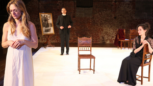 It began in 1941 as "Bobo", an unpublished short story about Alma (a name meaning soul) who rebels against her Puritan father, becomes a prostitute and gives birth to a magical child who brings her gold and jewels. He rewrote it as another Alma story in 1946, this one titled "Yellow Bird." Alma is again the repressed daughter of a fire-and-brimstone preacher, in this case she begins drinking, smoking and engaging in prostitution after a yellow bird flies into the window of her parish. This in turn led to a play about two sisters in New Orleans, originally called The Poker Night which, of course, became A Streetcar Named Desiree in 1947. Summer and Smoke was never considered to be on a par with The Glass Menagerie (1944) and Streetcar. . . . Williams himself wasn't satisfied with the way he told the story of the doomed attraction between the sexually repressed spinster Alma Winemiller and the sexy doctor next door to her father's rectory. And so he did an extensive rewrite in 1951 and renamed it Eccentricities of a Nightingale. It became Williams's preferred version of the unconsummated love affair, that ended with Dr. John finding his soul and the frustrated Alma's heartbreaking surrender to the call of the flesh. The revision, like its early version, never achieved top-of-the-Williams canon status. My colleague Simon Saltzman and I did get to see and review a beautiful production by T.A.C.T., The Actors Company Theater (Sad to say they stopped producing plays this year). Much as I liked that T.A.C.T. production, Summer and Smoke has somehow become more popular and respected. And it is indeed also worth seeing, whether again or for the first time. The two productions we caught at Curtainup were both excellent, one directed by Michael Wilson in Connecticut and New Jersy and one in London. I therefore looked forward eagerly to the Transport Group's staging at Classic Stage, especially since everything about it looked promising. I've admired the work of Transport Group's artistic director Jack Cummings III for years. His productions of John LaChiusa's First Lady Suite was exquisite. LaChiusa's original musical, Queen of the Mist, worked like a charm with only minimal scenery. The use of LaChiusa's music enhanced the Transport Group's revivals of William Inge's plays, so I was happy to see my advance press information list him as contributing original music at the Classic Stage. The performances at CSC also seemed to be in good hands. Marin Ireland has the acting chops to be riveting Alma. Nathan Darrow has the looks and experience (he's played Shakespeare as well as O'Neill characters) to make a fine Doctor John. And with T. Ryder Smith to play Alma's controlling preacher dad and Barbara Walsh as her embarrassingly nutty mother, the ensemble too seemed solidly cast. Actually, regular theater goers won't know anything about who's doing what, since the Classic Stage has initiated an annoying custom of not handing out programs until after the show. This practice makes sense if it would be a spoiler, but that's certainly not the case here. Given that for many years one of the pleasures of seeing a show at CSC was that they always provided especially interesting programs and enrichment notes. Unfortunately, the lack of pre-show programs, with or without enrichment notes, proved to be a minor disappointment, once the show began. Ireland is indeed a fine actress, and everyone else on stage did their best, but this super-spare, impressionistic staging somehow lacks energy and clarity. This is a play imbued with emotional richness and lyricism, but it's tapped into only occasionally here. This is a sprawling play and the playwright's own stage directions called for simplicity. But minimalism can work effectively, but it can distract as is the case here by keeping the audience so focused on trying to figure out what's happening and where we are in Glorious Hill, Mississippi. Consequently this sizzling battle between the soul for which Alma is named, and the flesh just doesn't engage us. Even LaChiusa's incidental music echoes the excessively bare of mood setting platform stage that has become something of a trademark of CSC productions under John Doyle's leadership. To repeat, Summer and Smoke, despite not being Tennessee Williams's best drama, has much in common with his seminal works, populated as it is with characters simmering with frustrated love and navigating the rocky path between human desire and a restrictive social environment. This social milieu is colorfully underscored by ensemble characters like the gossipy Mrs. Bassett (an amusing Tina Johnson) and Alma's boring beau Roger Doremus (Jonathan Spivey). Both Alma and John's need to rebel is underscored by brief scenes with her over-protective, overly moralistic father and mentally frail mother (Barbara Walsh and T. Ryder Smith) and John's judgmental father (Philip Clark). While Williams replaced the subplot involving the seductive Mexican senorita Rosa Gonzalez and her pistol-packing father in Eccentricities for a Nightingale, the melodrama Rosa and her father (Elena Hurst and Gerardo Rodriguez) bring to Summer and Smoke serves s a pick-me-up in this sluggish production. Even in a disappointing production like this, Williams's language still gives Ireland's Alma an opportunity to break our hearts, memorably so in her final plea to John: "I've lived next door to you all the days of my life, a weak and divided person who stood in adoring awe of your singleness, of your strength. And that is my story! Now I wish you would tell me —why didn't it happen between us? Why did I fail? Why did you come almost close enough —and no closer?" |