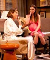 If you sense something unreal about the kneeling woman and the unconventionally non-pious nun, right you are. You see, the scene is an episode from the soap opera in which the praying woman has been a character for 27 years and it ends with the nun's (Betty Gilpin) hilariously surprising exit courtesy of costume designer Nicole V. Moody. The program lists just two actors, the play actually features a handful of characters who are either unseen or played by the versatile Gllpin. These characters identified next to her program listing under the catchall of "et al" include soap diva Ada's real life daughter and very pregnant daughter Ophelia, her TV daughters (one wheelchair-bound and occasionally comatose, the other her evil jailbird twin) and their brother rising from the grave in which he was buried (alive!) as an infant. While in an interview with WTF dramaturg Claire Drobot, playwright Haidle explains his writing the script for such a small cast was dictated by the realities of producing plays in today's economy, no such economic concerns apply to the staging. This is as richly endowed with bells and whistles production as you're likely to see anywhere in the Berkshires (or, for that matter, on or off-Broadway). If Malick wasn't so elegantly impressive and Gilpin nothing short of amazing in her wizardly persona shifts, it would not be remiss to dub Alexander Dodge's set design as this production's star. Certainly, if the Williamstown interns can take a curtain call bow, Dodge should be called on stage for a well deserved round of applause. Dodge should bring along costumer Moody and sound designer Fitz Patton. Moody outfits Gilpin with such flair and originality that there are times when you feel you ought to pull out your opera glasses to make sure that this is the same person you just saw in a totally different role. Fitz Patton makes up for the fact that the title question is referred to several times but never answered by creating very authentic claps of thunder. Unfortunately, neither the gifted actors, the inventive design team or the best efforts of director Justin Waldman can make Haidle's comedy rise to the comedic potential o that opening scene. His basic plot about a soap opera actress for whom the life of her TV character has become more real and meaningful than her real life which is devoid of any satisfactory relationships is a clever variation of a time tested forumula that dates back to the 1947 movie, Double Life. That' still a popular golden oldie DVD a won Ronald Colman an Oscar for his portrayal of a veteran stage actor who, while playing Othello, falls victim to the actor's malady of mixing roles with reality. Haidle's dealing with this concept comically rather than as a moody film-noir has given the the excellent Malick and Gilpin neither consistently funny or gripping material to work with. The realistic bow to economical casting actually works in the play's favor since Gilpin's multiple role shifts are great fun to watch, a bit reminiscent of Charles Ludlum's enduringly popular The Mystery of Irma Vep. However, despite some nice touches of absurdity the humor loses its fizz well before the end of the 90-minute run time (mercifully shortened from the originally intended two acts). The surreal comic business never allows the genuine poignancy of a woman who has escaped from her inability to relate to anyone, even her own daughter, only to be faced with having her character killed off due to the network's common ailment— low ratings— to engage our sympathy. The same holds true for the pain experienced by a daughter yearning for love and attention as more than a scriptgirl/assistant. Also a misfire is the hint that there's a darker side of the story indicating that Ophelia, contrary to her name, is stronger than her mother and that the potential end of her career is only the final of many episodes indicating her descent into madness. This is the fourth time I've found myself questioning the wunderkind status that has attached itself to Haidle since his graduation from Julliard. His three previous plays reviewed at Curtainup (see links to reviews below) were all given beautiful productions at highly regarded Off-Broadway theaters. All were buoyed by fine performances, but were propelled downhill by the author's failure to sustain his penchant for mixing ironic surrealism and realism. All left us with a sense that, as Les Gutman put it in his review of Rag and Bone, "there should be something more waiting to flow from the playwright's pen " and the hope that he'll let us see what's really deep down in his heart rather than continuing "to hide behind stick figures and banal diversions." Sad to say, this latest handsomely produced and superbly acted world premiere, still leaves us waiting. Links to other reviews of plays by Haidle Mr. Marmalade- 2005 Rag and Bone-2007 Saturn Returns-2008 Nikos Production Notes What Is The Cause Of Thunder? by Noah Haidle Directed by Justin Waldman. Cast: Wendie Malick (Ada), Betty Gilpin (Ophelia et al Set designer: Alexander Dodge Costume designer: Nicole V. Moody Lighting designer: Jeff Croiter Sound design and original music: Fitz Patton. Stage manager: David Sugarman Running Time: 90 minutes without an intermission July 22 - August 2, 2009. Reviewed by Elyse Sommer on July 23rd Caroline In Jersey